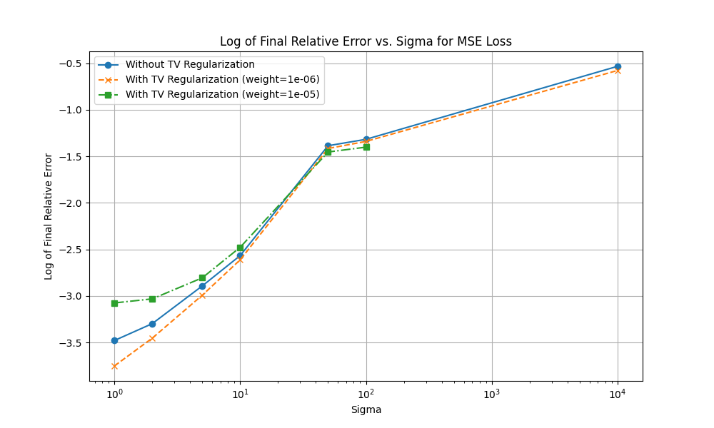 - 在没有好的初值的情况下,不管用什么损失函数,不管是否加tv正则化,都是寄(层数少的话用W2可能可以勉强做一做)。