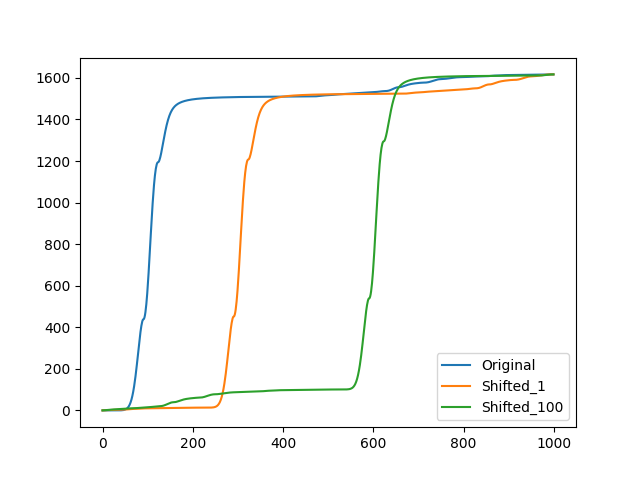 在这张图片中,我们可以看到橙色的波场是蓝色波场的一个偏移,在拟合的时候,梯度下降会优先将波做压缩而非平移,他并不知道平移的结果会使得误差函数降得更低。并且当偏移量足够大的时候,会发现MSE几乎不动,比如下面的图: