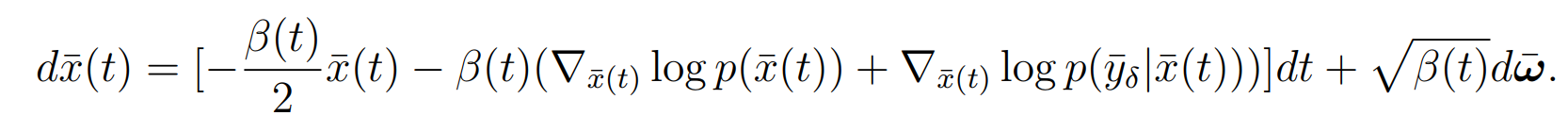 连续意义下,该方程可以从一个近似噪声的分布,逐步返回到的初始分布,其中为先验数据分布。